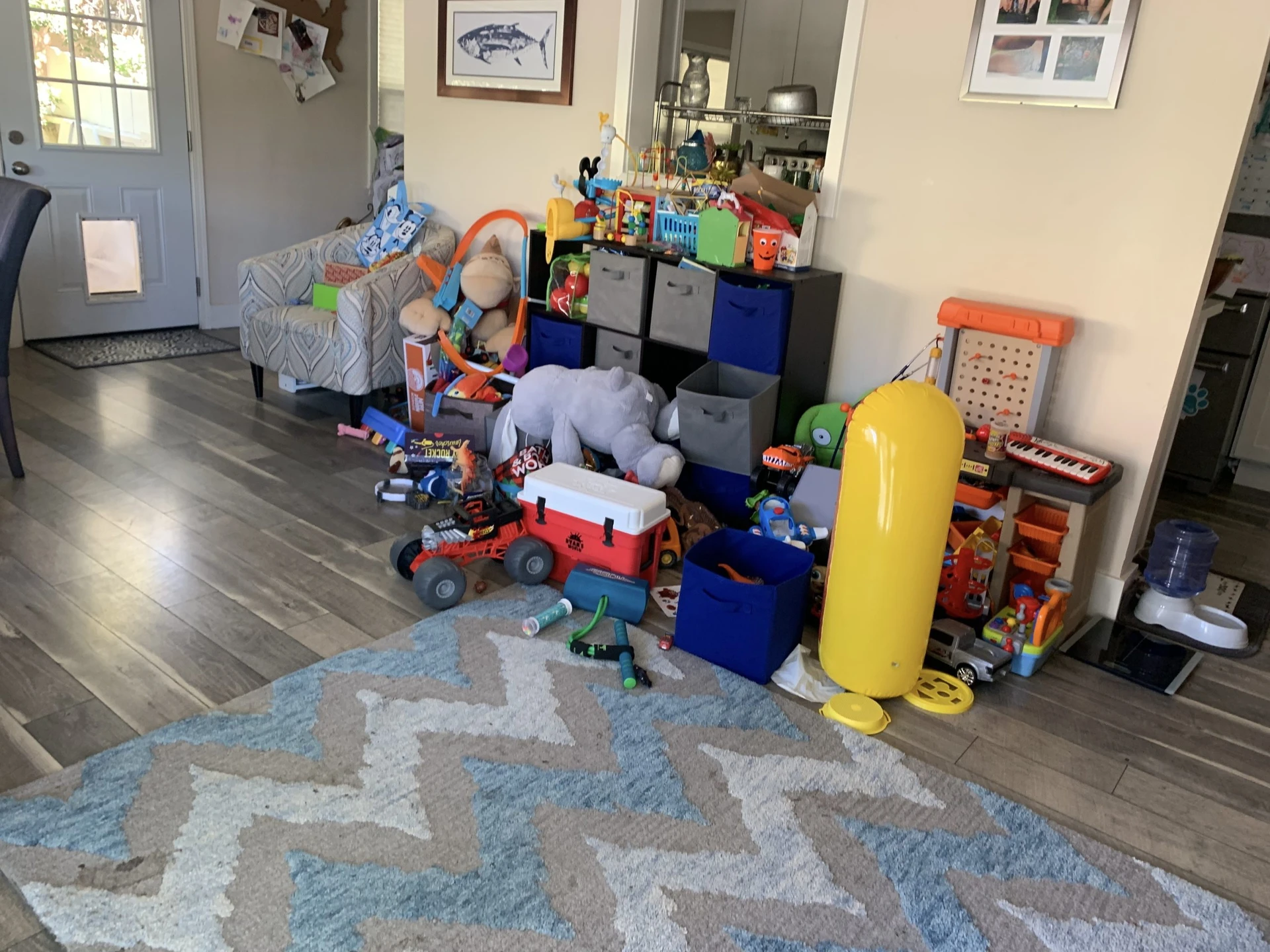 I was able to convince her to get plastic storage bins for the sorting and storing process just so the toys had some sort of home instead of just being on the floor.