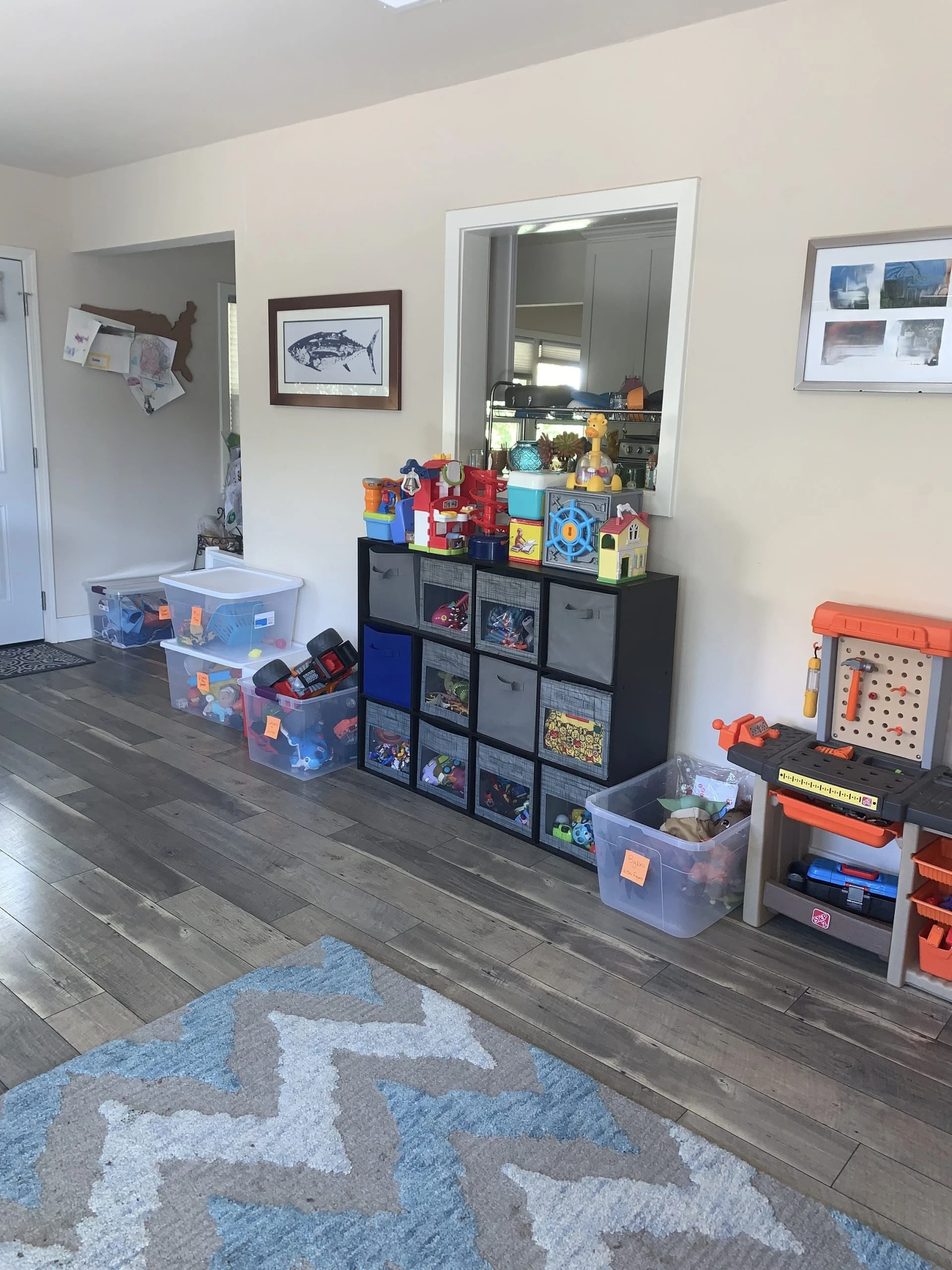 Like many play spaces I have organized, there were more toys then there was the space to store them.